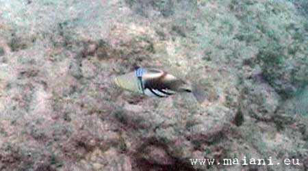 This triggerfish is very appreciated by the aquarium fanatics. It sleeps on a side.